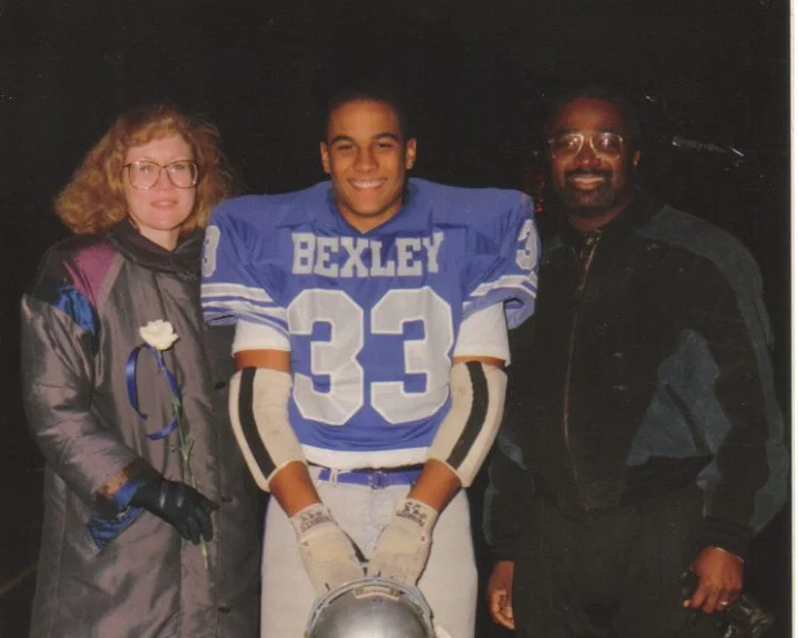 To my understanding, my parents moved to Bexley for the schools. They didn’t like the fact that I would be bussed out of the neighborhood in my earlier district. I felt like I was behind academically all through school. Catching up was hard and the things that kept me invested were sports. I wasn’t the greatest athlete but I loved competing with my friends & neighbors. I caught some flack from time to time about being black but not being dominant. I may or may not have had a coach or two that expected more from me in athletics because I am black. Through that, though, I had great experiences on the field, court, diamond, and track.
